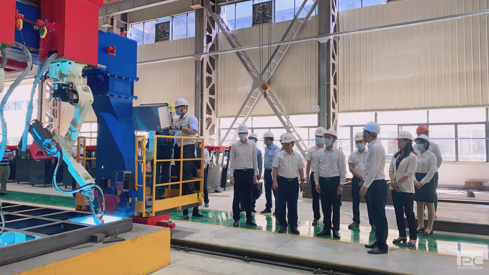 调研组实地参观人防门自动化焊接车间