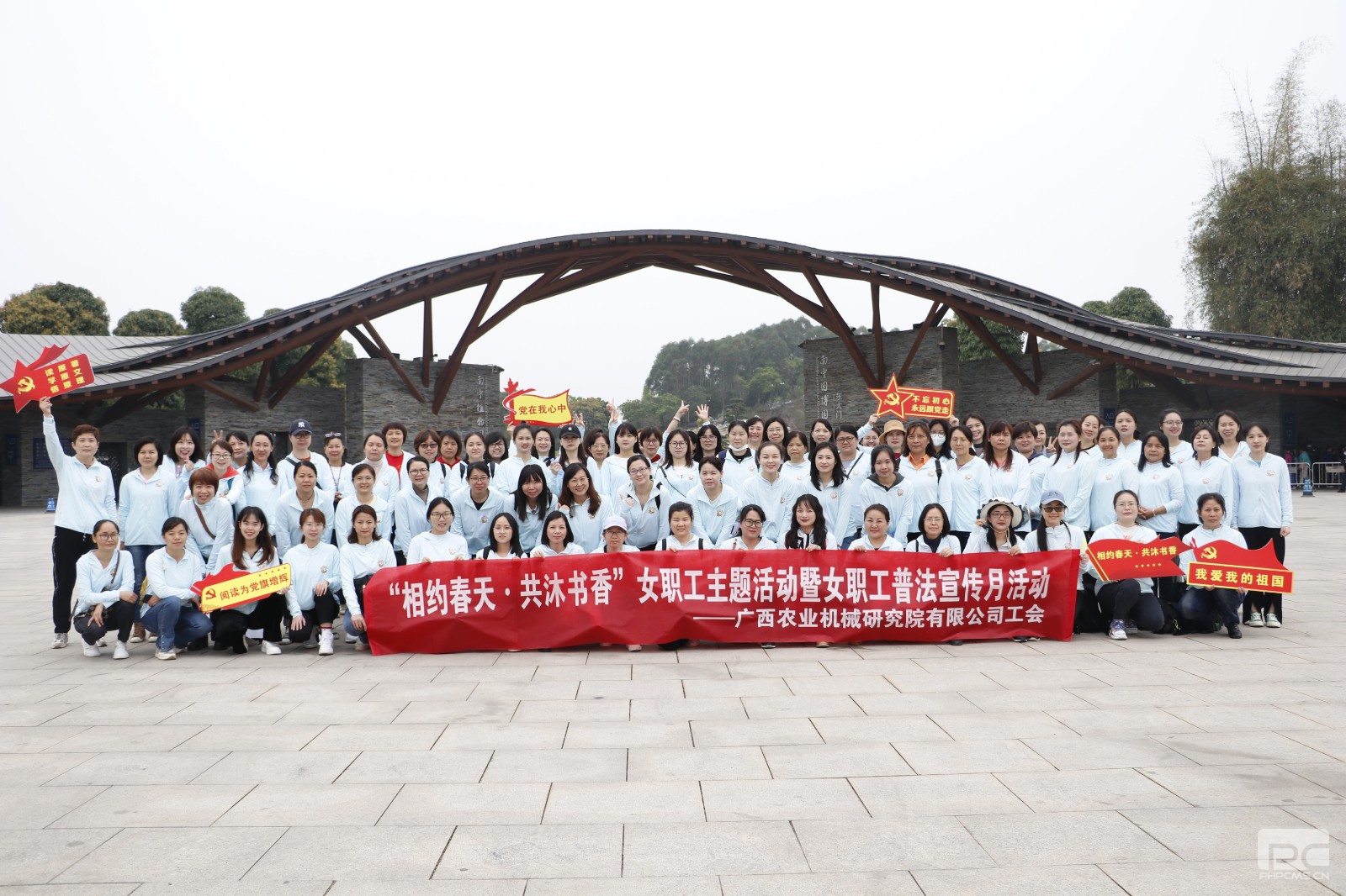 为丰富广大女职工的业余文化生活,增强女职工的凝聚力和向心力,提高女职工知法、懂法、守法并依法维护自身权益的意识和能力,3月8日,金年会app工会组织全体女职工到南宁园博园开展“相约春天·共沐书香”女职工主题活动暨女职工普法宣传月活动。