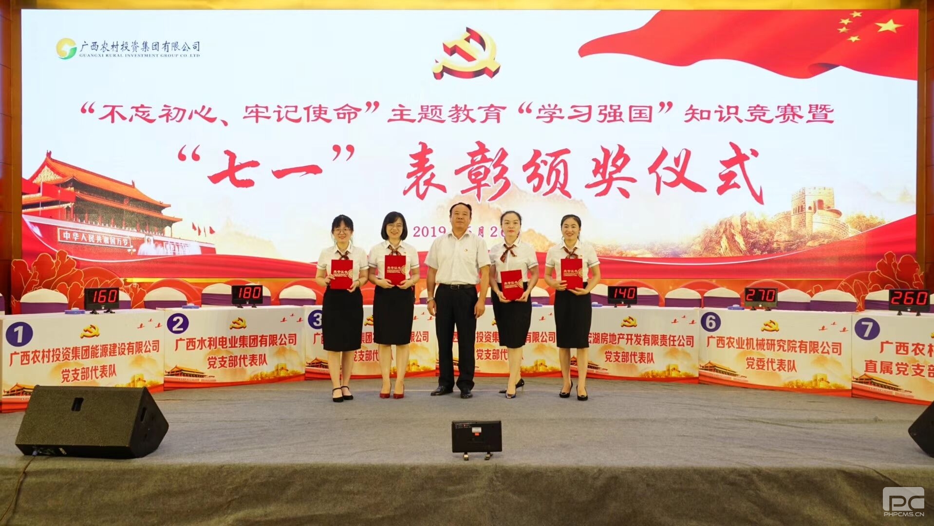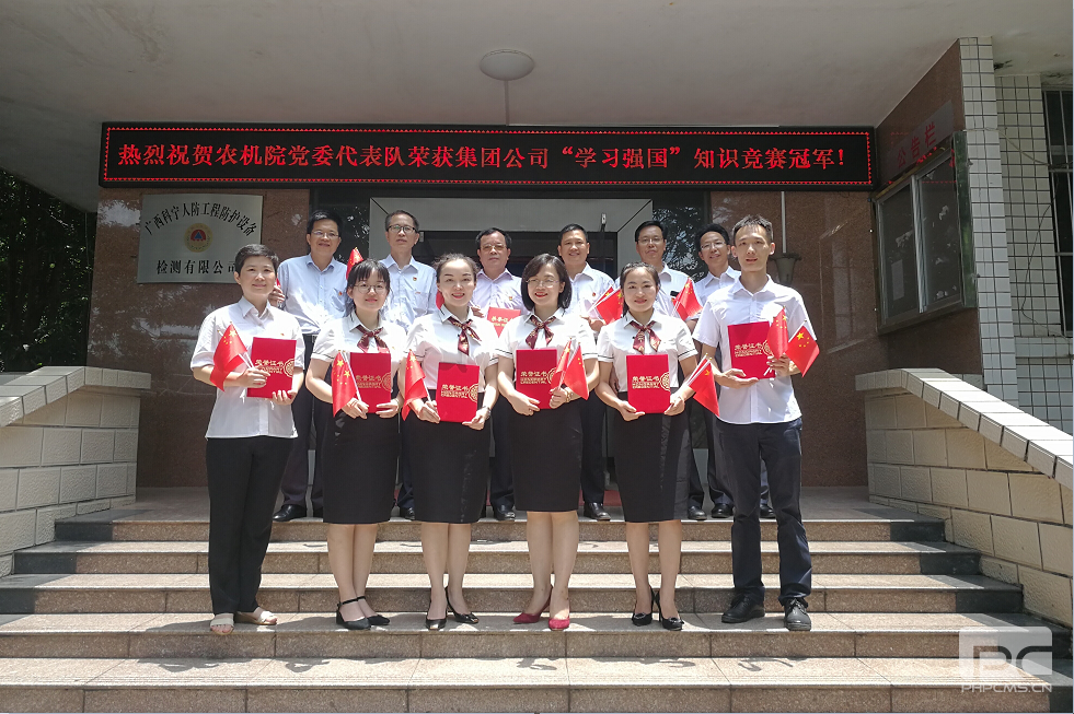 6月26日上午,集团公司党委“不忘初心、牢记使命”主题教育“学习强国”知识竞赛暨“七一”系列活动在南宁天湖酒店16楼会议室落下帷幕。金年会app代表队凭借扎实的知识功底和稳健的现场发挥,在知识竞赛中以优异成绩勇夺桂冠!